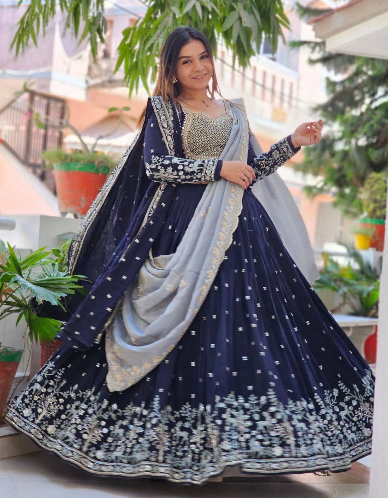 Elevate your festive and party wardrobe with this Fox Georgette Lehenga Choli, featuring intricate embroidery and heavy sequins work.