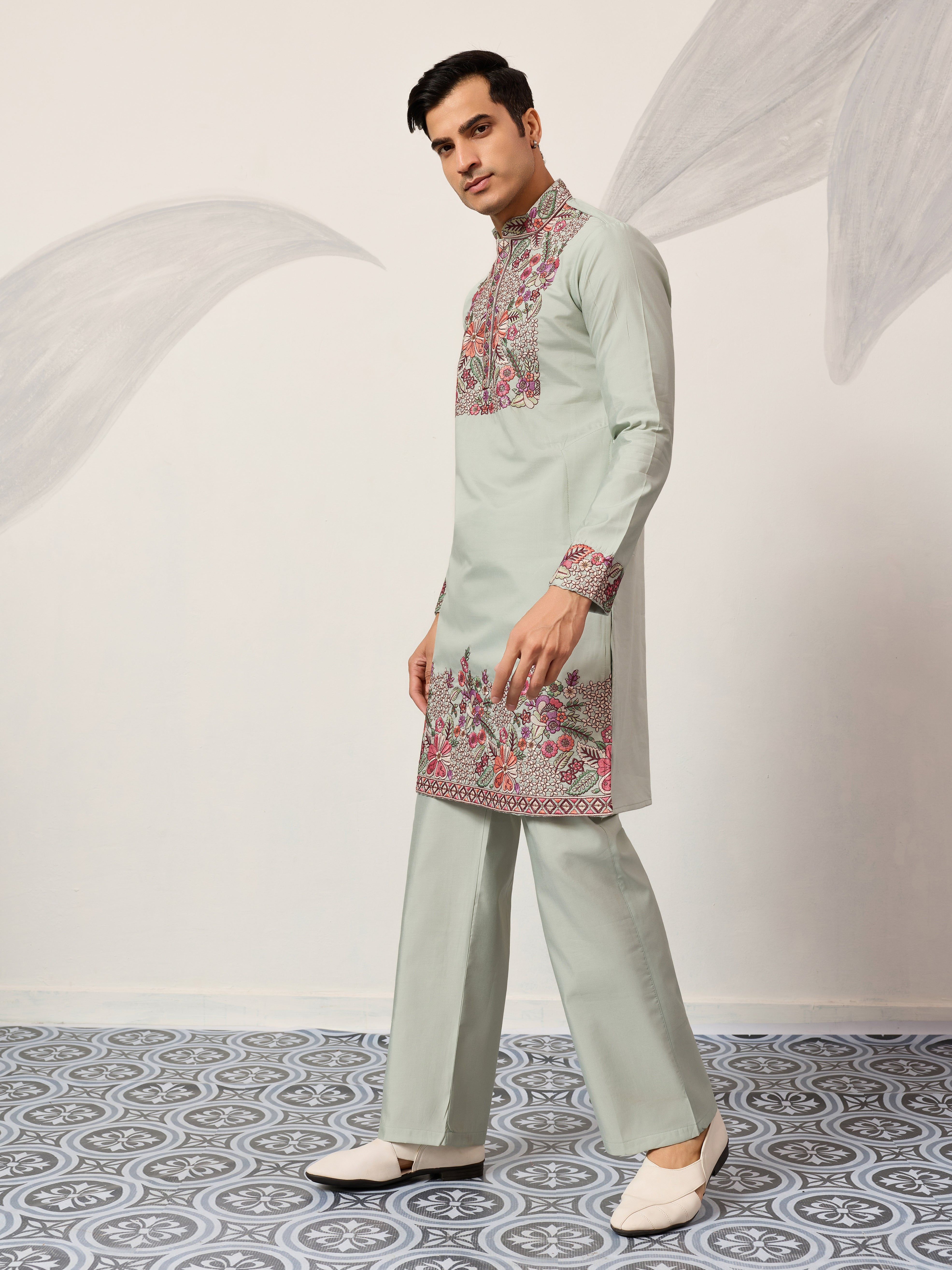 Pista Green Kurta Pant Set for Wedding & Festive Wear