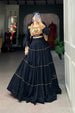 Elevate Your Navratri Style with our Exquisite Plain Pure Rayon Lehenga and Intricately Embroidered Gamthi Work Koti - A Perfect 3-Piece Ensemble