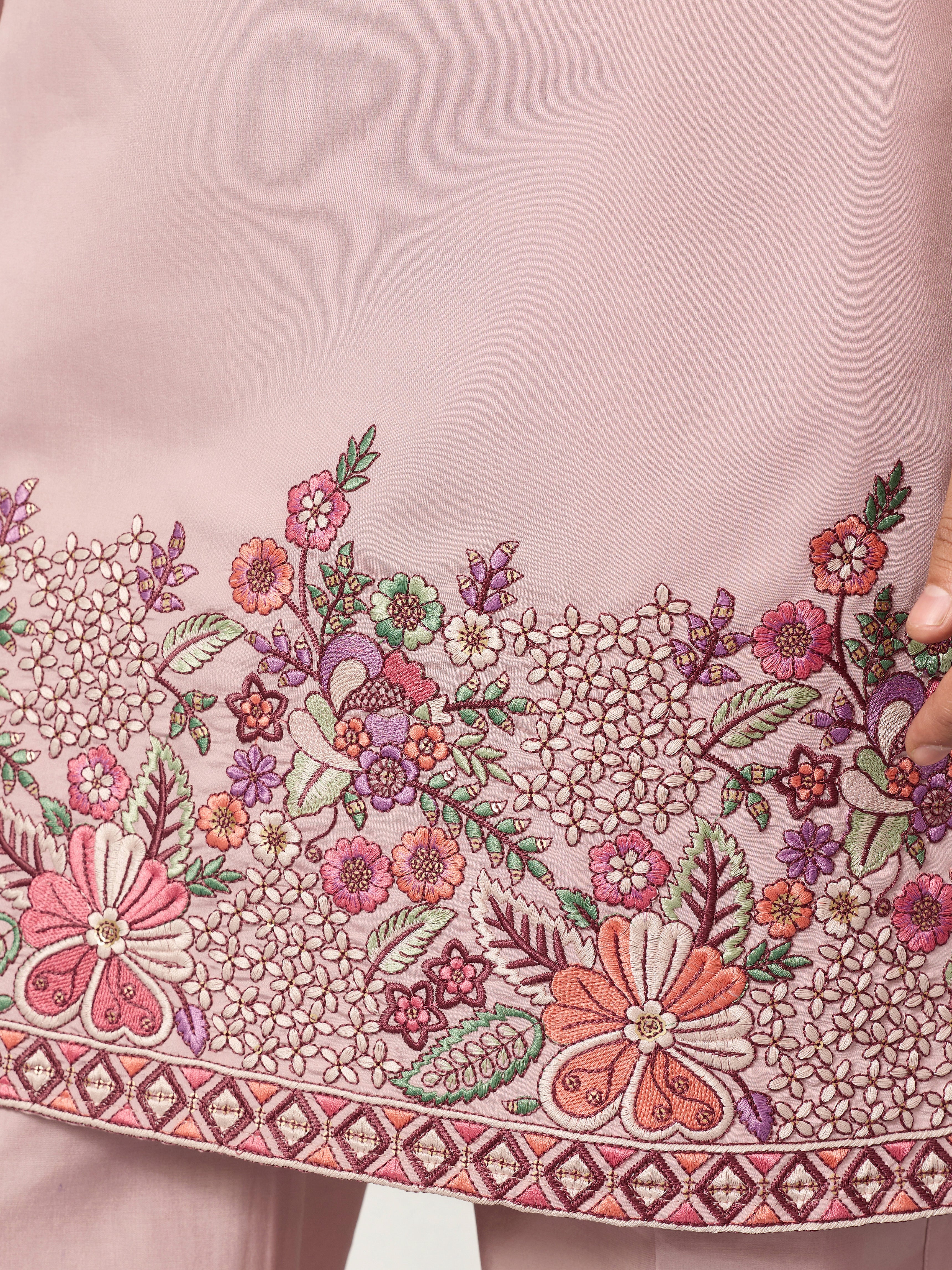 Stylish Dusty Pink Kurta Pant Set for Festive Occasions