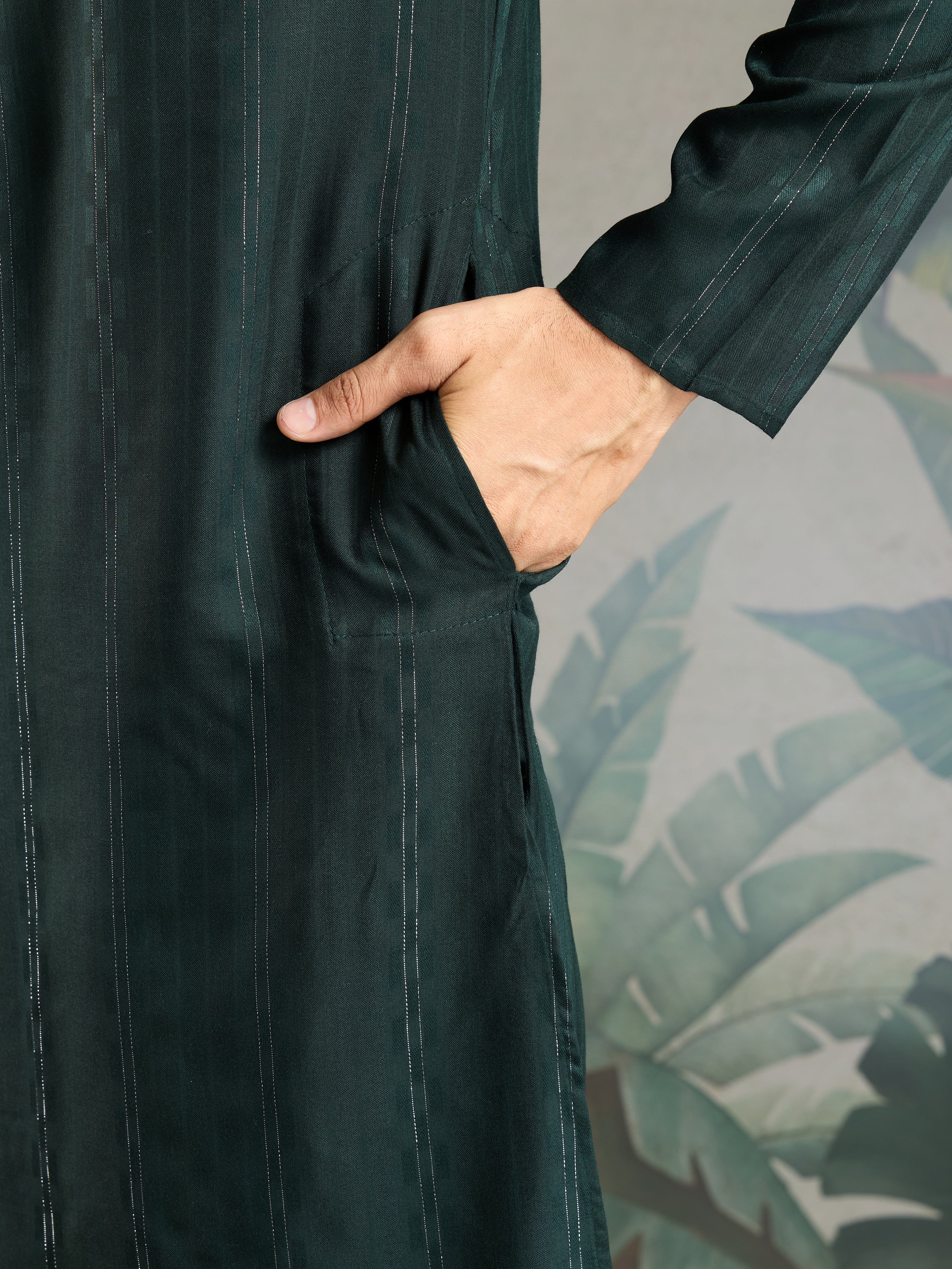 Elevate Your Ethnic Wardrobe With This Green Kurta With Dupatta for Mens, a Perfect Blend of Tradition and Elegance. Designed for Those Who Appreciate Classic Style With a Modern Touch, This Outfit Features a Mirror Work Pattern on Premium Pure Viscose Fabric, Offering a Lustrous Finish and Soft Feel. The Kurta’s Self-jari Weaving Work Adds a Royal Aesthetic, Making It Ideal for Festive Functions, Weddings, or Traditional Ceremonies.